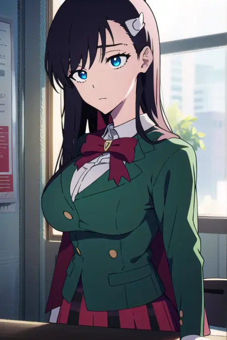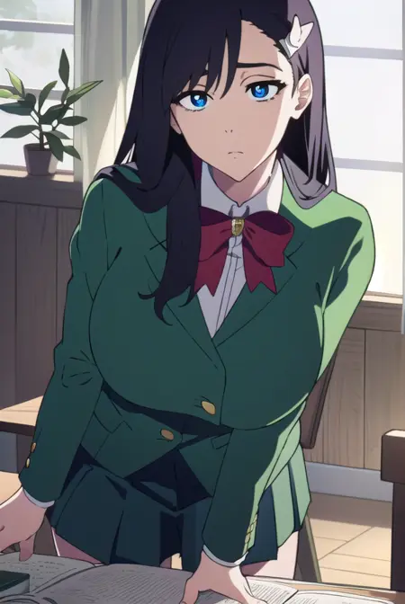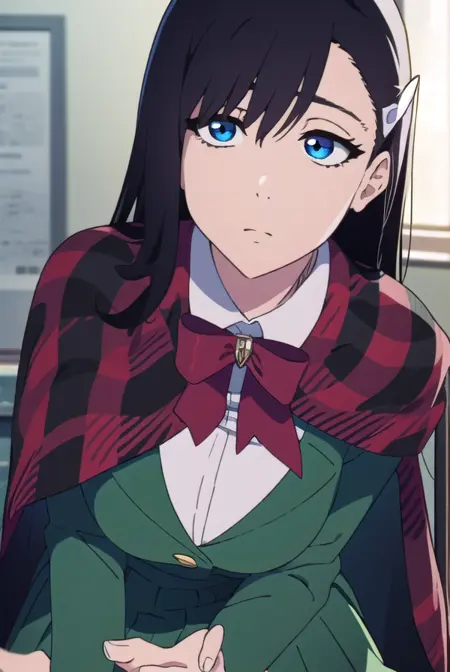 noel niihashi 长发,蓝眼睛,黑发,发饰,发夹,