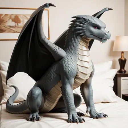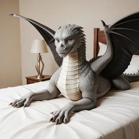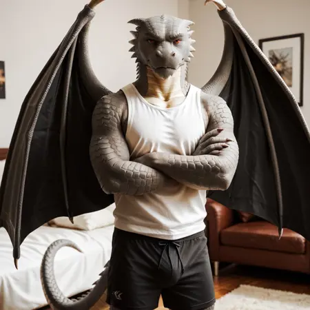 追加プロンプト:dragon, gray scales, tail, scales, claw, wings, red eyes, 1boy,