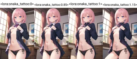 Add a kind of stomach tattoo with only few changes on overall composition of the image.