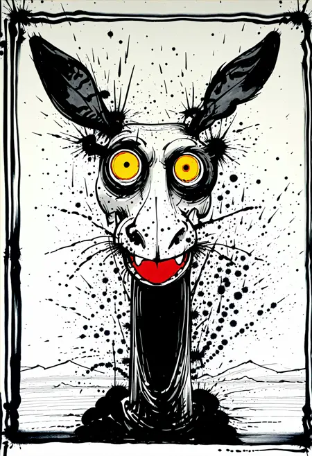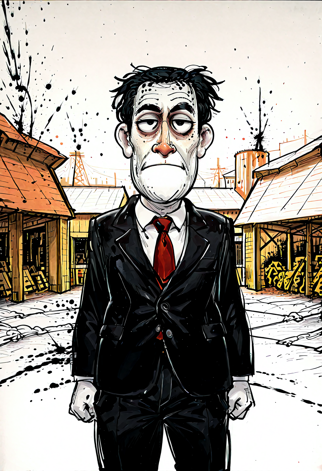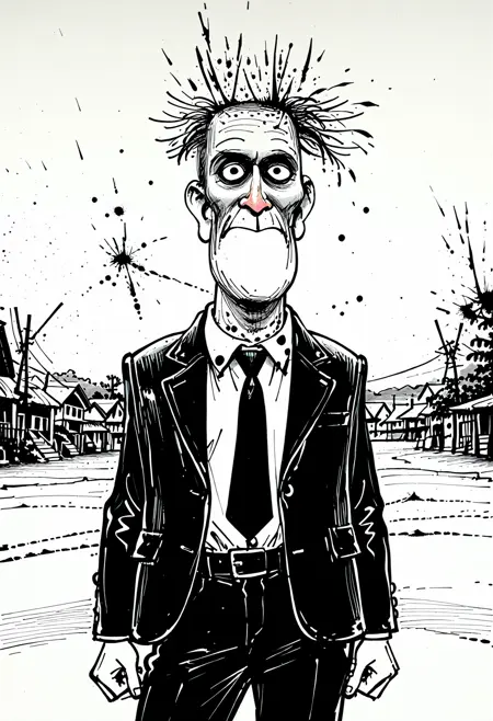 这个LoRA将拉尔夫·斯泰德曼标志性的艺术风格所特有的鲜明而混乱的能量带入你的AI生成作品中。非常适合创作怪诞的讽刺画、超现实主义图像以及充满动感、墨水溅洒的构图,该模型强调原始情感与艺术的即兴性。