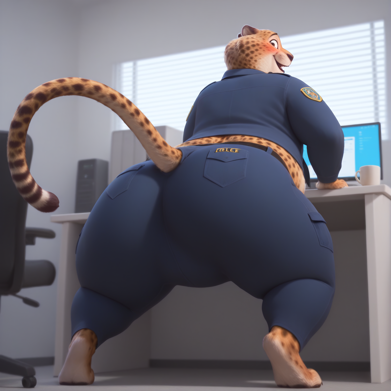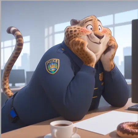 生成《疯狂动物城》中的角色Clawhauser警官,专门使用他在《疯狂动物城+》中的形象进行训练。因此,你可以生成他穿着ZPD警察制服、《你认为你能跳舞吗?》中的绿色短裤和身体彩绘,或者完全不穿衣服——嘿,我不做评判。
