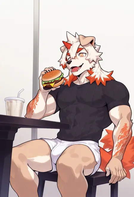 词汇:Hung、1个男孩、动物耳朵、棕色毛发、狗男孩、狗耳朵、狗尾巴、毛茸茸的、毛茸茸的男性、男性焦点、中等长度头发、白发、橙色渐变发色、橙色眼睛、单角