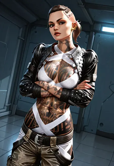 범용 트리거 단어 ME3: - jackmeaf, 문신 또는 전신 문신, 귀걸이, 갈색 머리, 말머리, 옆머리 밀기