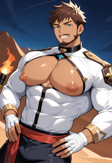 nav3ed_dl, 暗い肌の男性, 短い髪, 茶色の髪, 青緑色の目, 顔の毛, ひげ, ひげ