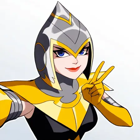 アスガルドの鎧: jwsp, 1girl, solo, アスガルドの鎧, ヘルメット, 青い目, 黄色の肘手袋, カートゥーン