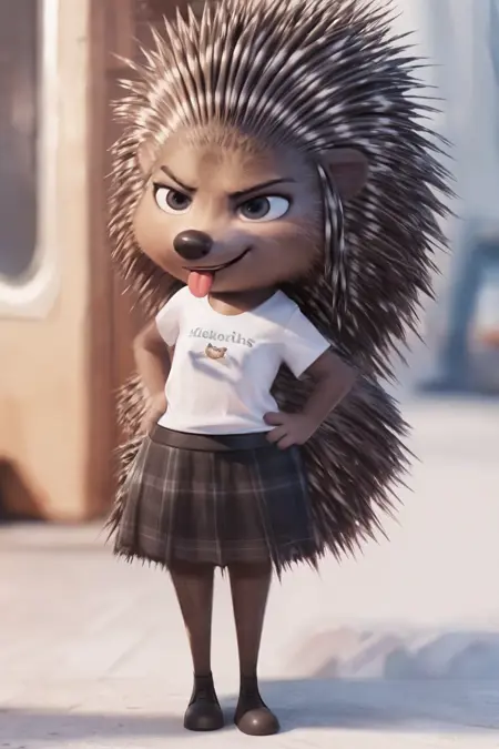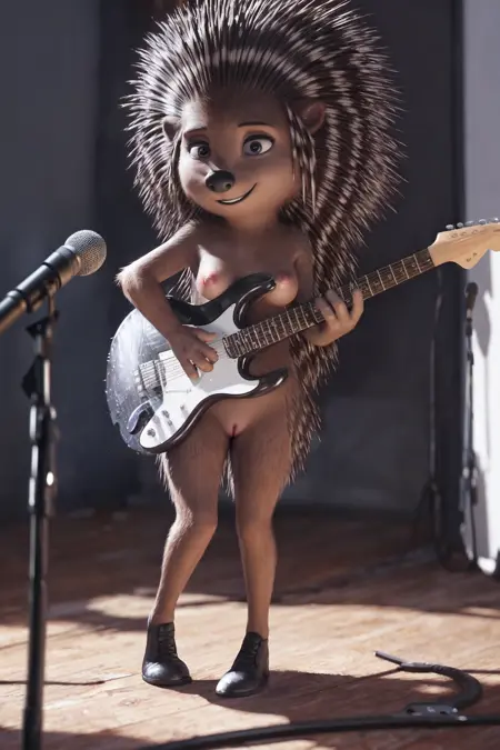 (by qupostuv35:1.2), (photorealistic painting art, professional photo, 4k:1.2), female, (Detailed face), (solo:1.1), (more details:1.1), ((anthro, humanoid)), [(thin:1.1) : small petite : (ash porcupine:1.2):4], (Detailed face), (anthropomorphic legs, anthropomorphic hands:1.1), (solo), (detailed background:1.1), lora:Ash\_V1:0.7