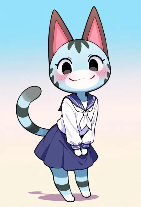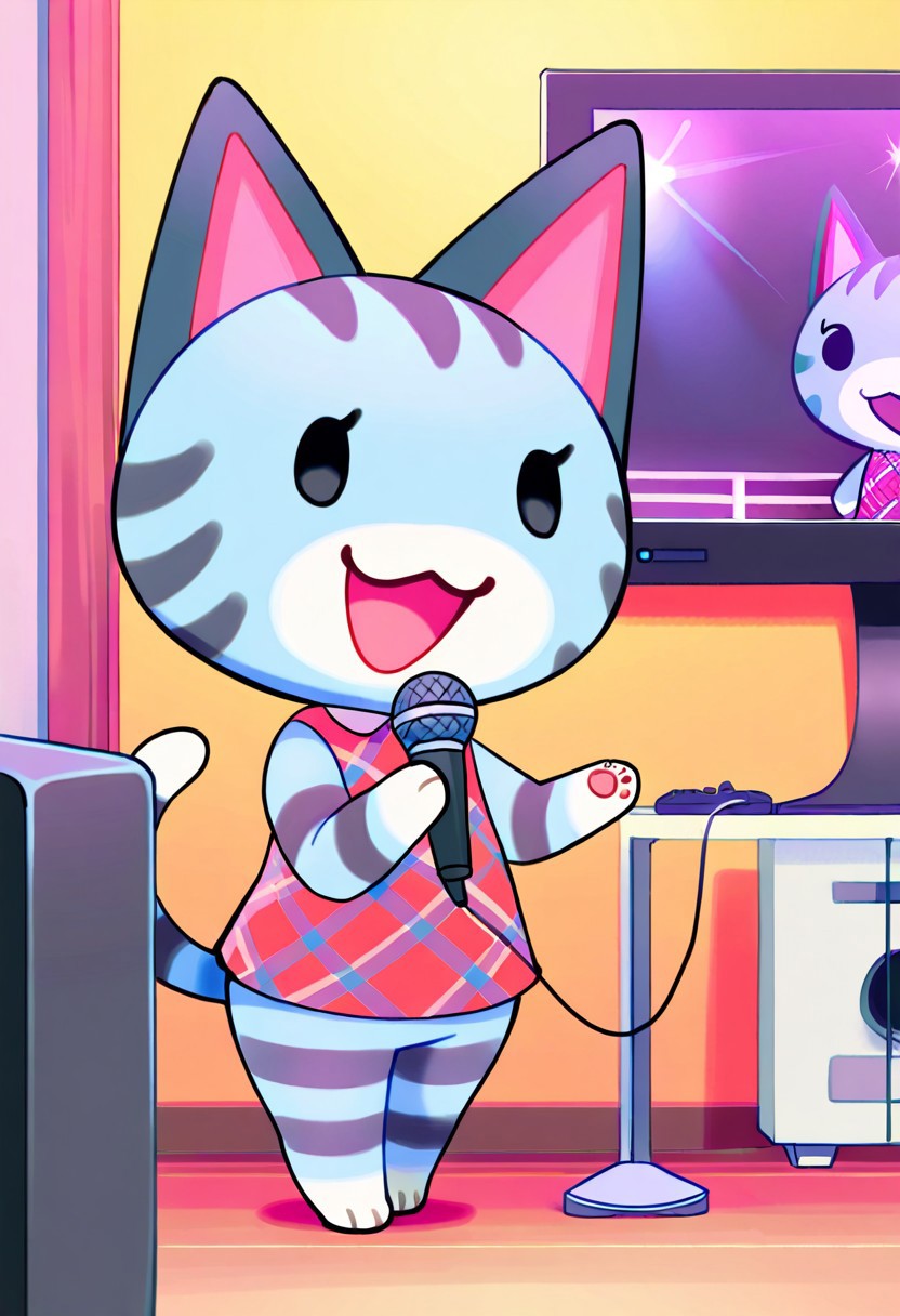 lolly_(animal_crossing), female, furry, feline, cat, blue fur, black stripes, anthro, 6w6