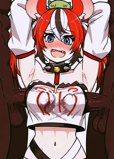 Useful additional keywords: penis under clothes, 1boy, 2boys, surrounded, arms up,