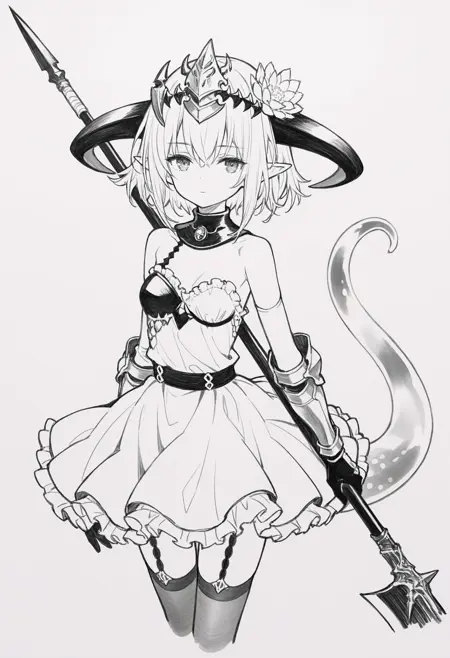 저는 창의 앞부분을 학습 캡션에 "weapon"으로 별도로 포함시켰지만, 잘 작동하지 않았습니다. 또한 프롬프트에 "weapon"을 넣으면 양손 무기 사용이 발생하기 쉽습니다.