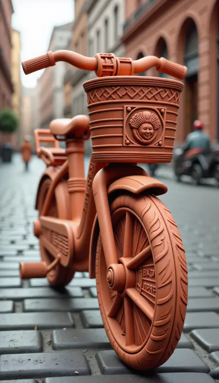 提示中应包含触发词(“made of terracotta”)。