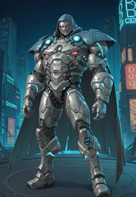 1boy, d00m99, robot, cyborg, robot joints, glow red eyes, hood, shoulder pads,