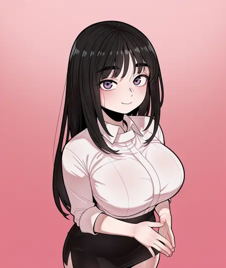 延杜娜:1girl,Yeondoona,黑发,长发,浓眉,紫色眼睛,大胸