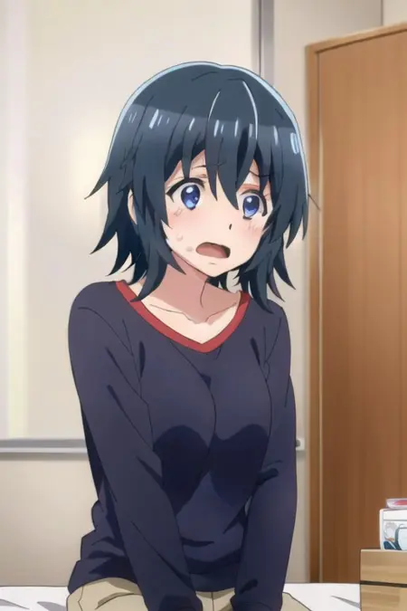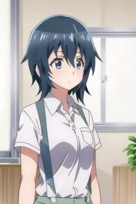 트리거 단어: hoshinomori chiaki, 검은 파란색 머리카락, 파란 눈
