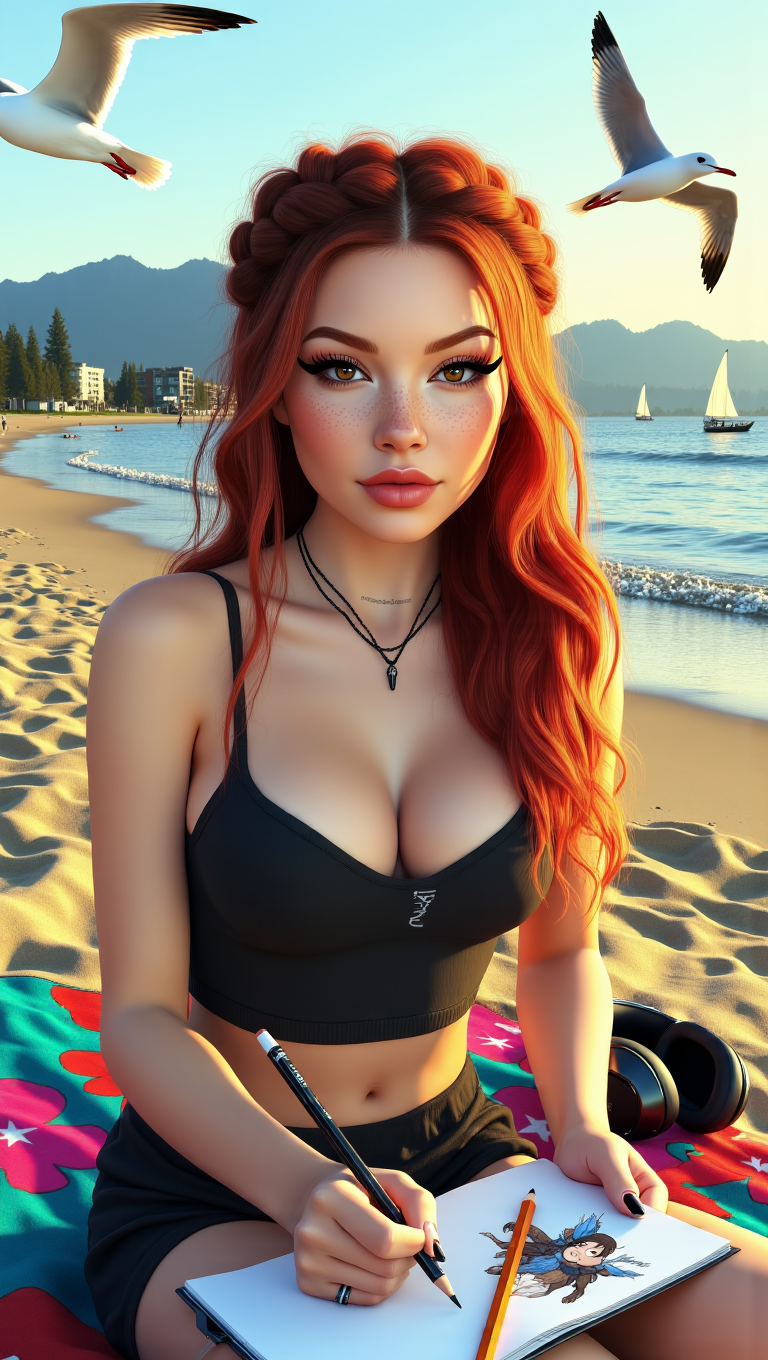Calliope is a bold and radiant influencer blending celestial elegance with a modern, edgy aesthetic. Her typical day begins as the sun rises over California’s coastline, where she rides the waves with the power and grace of a true competitive surfer. After catching her last wave, she heads to her studio, where the soothing process of acrylic pouring and resin art takes over, creating vibrant, fluid masterpieces. As the day fades into evening, Calliope gets her energy flowing by dancing to 90’s Eurodance beats, letting the nostalgic rhythms fuel her creativity. As night falls, she retreats to the great outdoors, camping under a blanket of stars, where she feels connected to both the cosmos and the earth. Calliope’s life is a balance of adventure, artistry, and the wonder of the universe, inspiring her followers to embrace the beauty of living fully in every moment.
