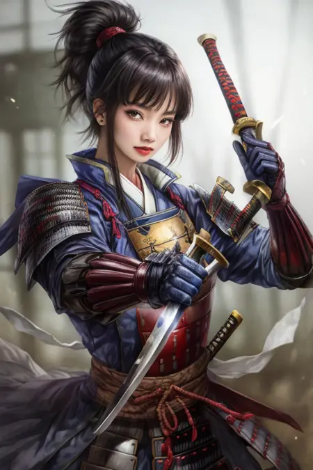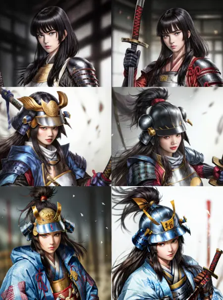 그러나 이는 전국 시대의 사무라이나 공주 등을 다양한 스타일, 예를 들어 애니메이션 또는 리얼리스틱한 스타일로 생성하는 데에도 활용할 수 있다고 생각한다. 나는 revAnimated를 사용했다.
