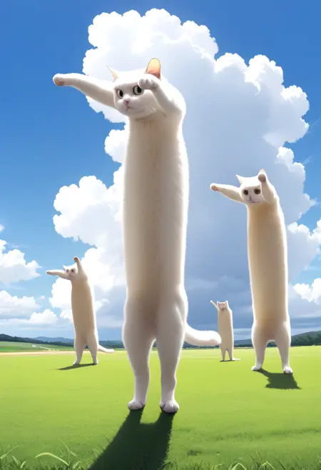 虽然在illustrious上即使不使用LoRA,有时也能画出longcat (meme),但成功率太低,所以我制作了这个LoRA。