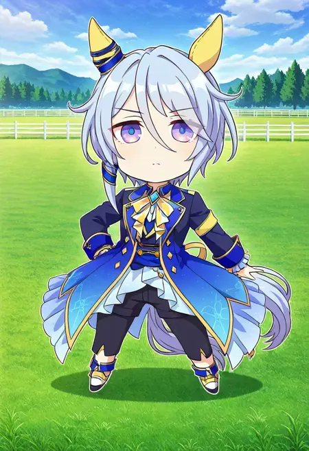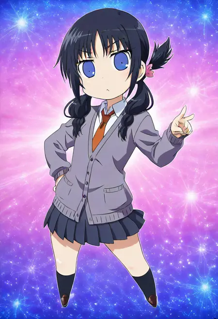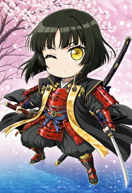 特にプロンプトは必要ありませんが、「chibi」と追加すると生成に役立ちます。また、このLoRAはデフォルトで複数のキャラクターを生成しやすいので、「solo」を追加することをお勧めします。