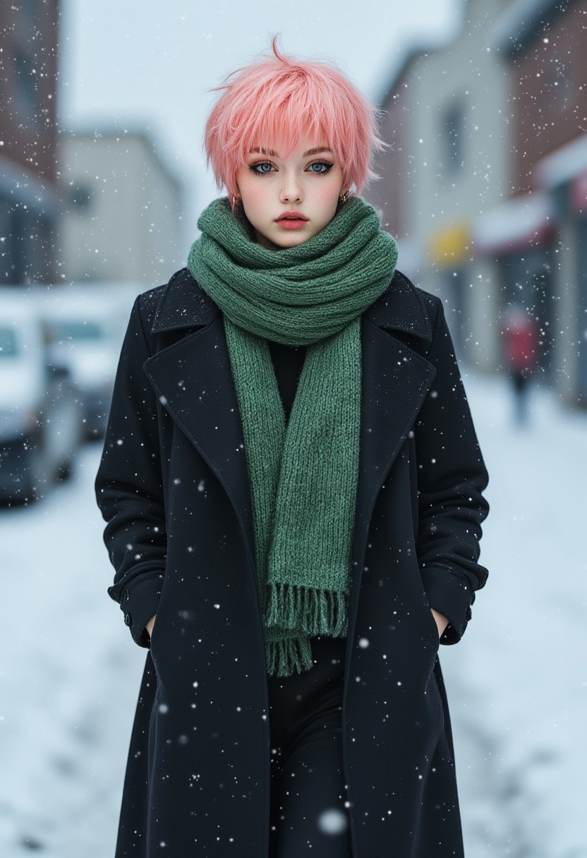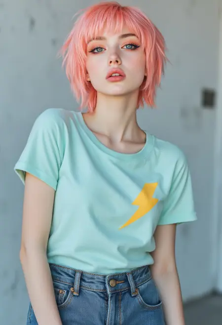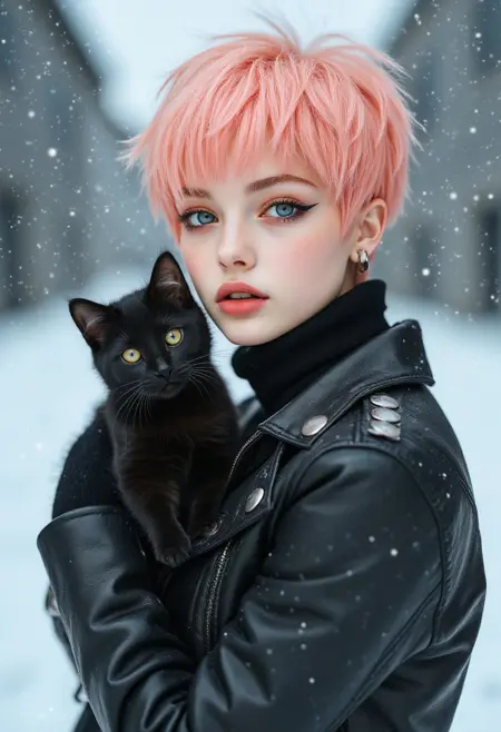 punk girl with short pink hair