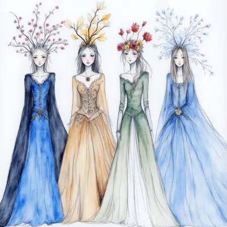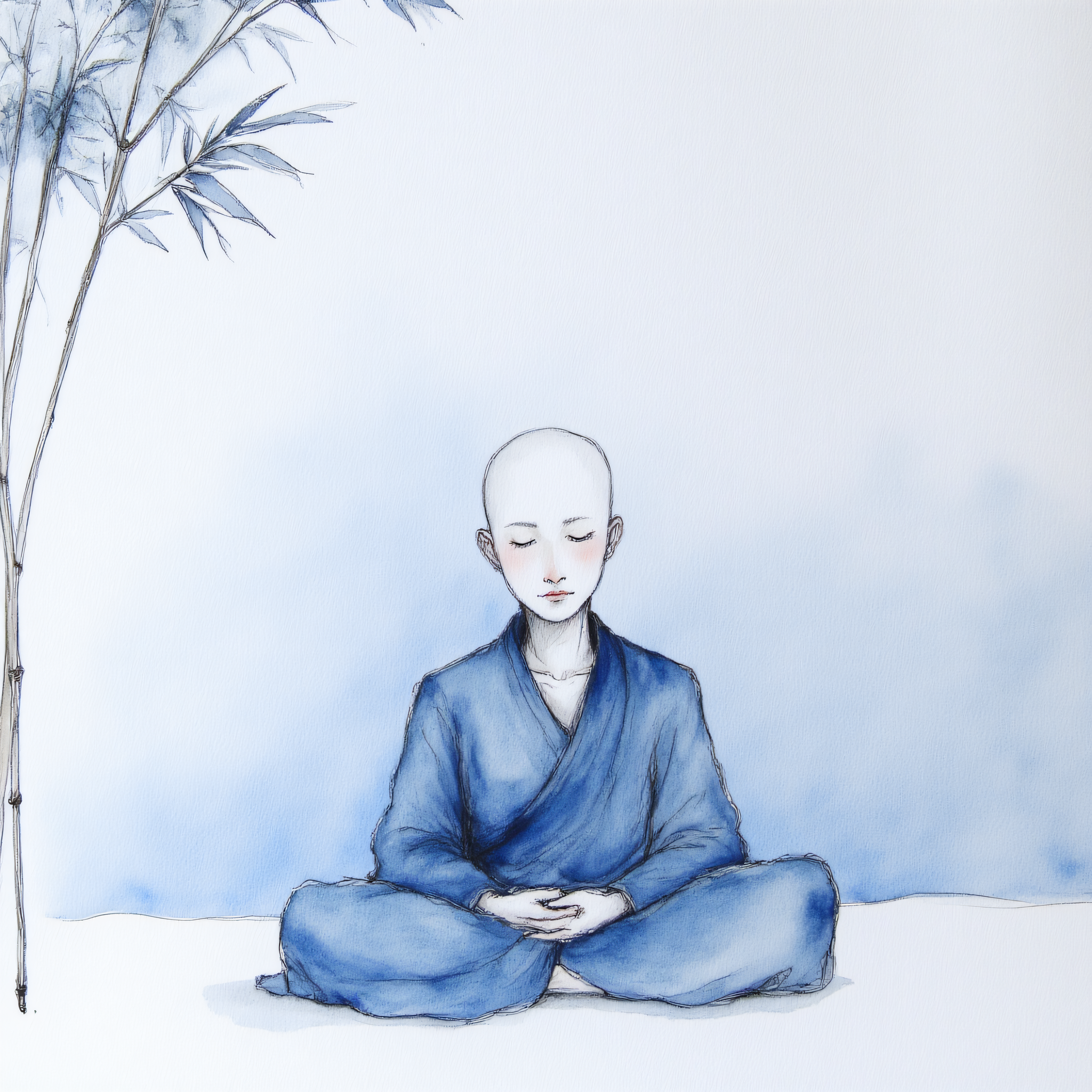 这种风格以柔和的蓝色、白色和灰色水彩色调为主,营造出宁静而内省的氛围。极简主义手法强调抽象的形状与人物,唤起梦幻般超凡脱俗的意境。