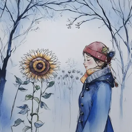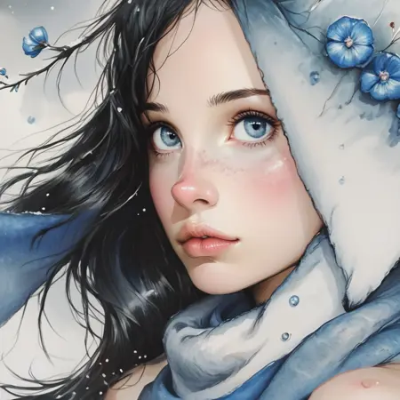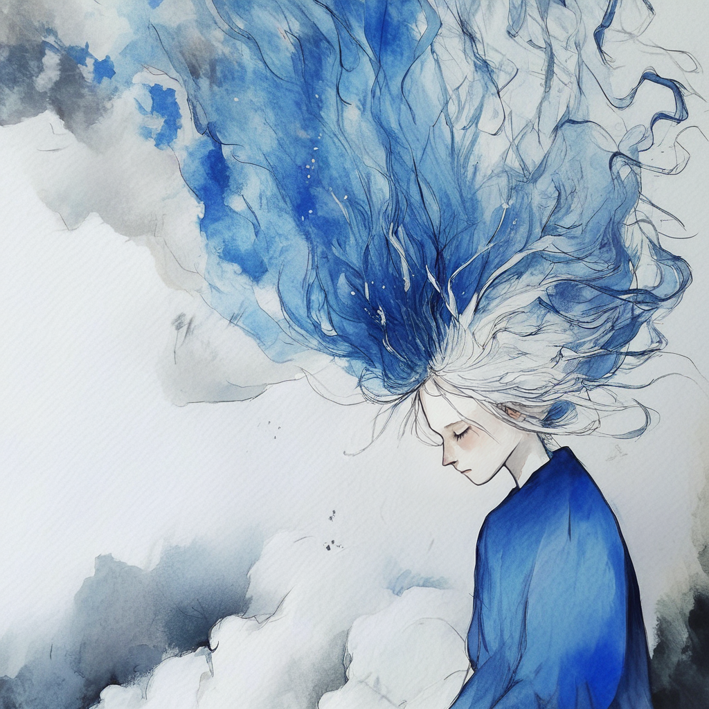 这种风格以柔和的蓝色、白色和灰色水彩色调为主,营造出宁静而内省的氛围。极简主义手法强调抽象的形状与人物,唤起梦幻般超凡脱俗的意境。