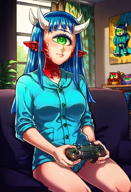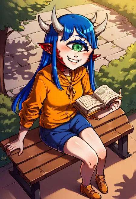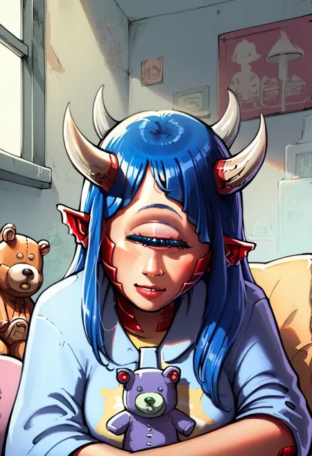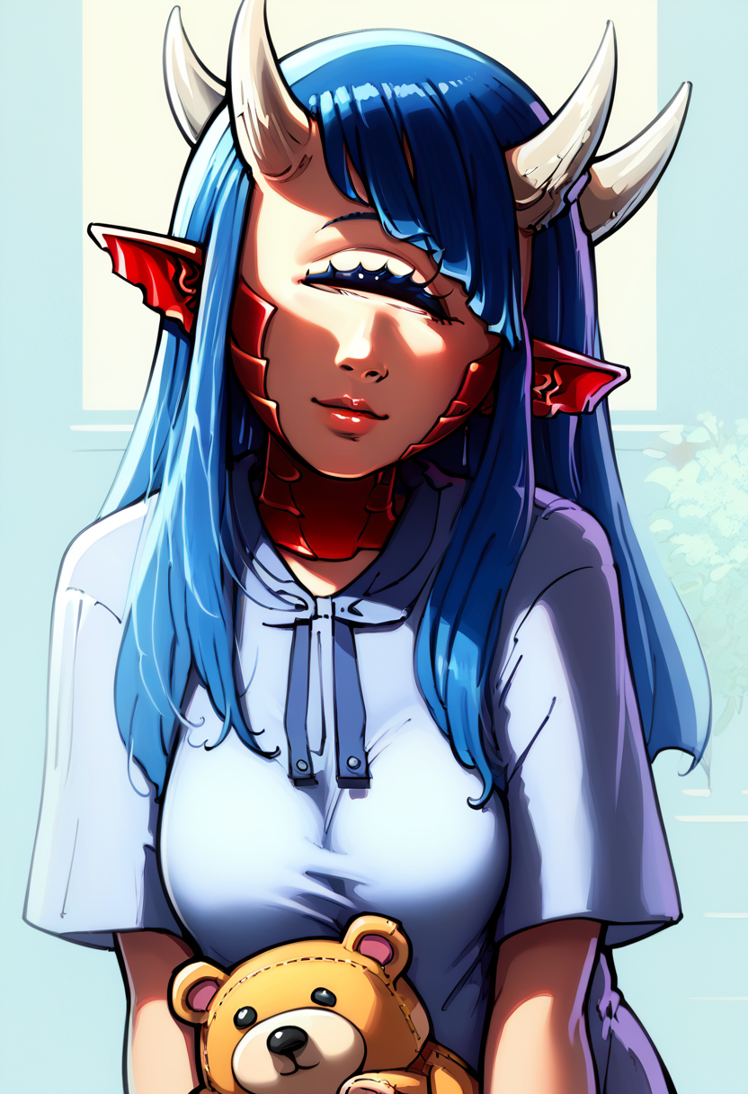 エポックを増やすと角は改善されましたが、目はさらに悪化しました。私はこの二つの主要な問題のバランスを取ろうと試みました。また、Caco-chan は首や頬のように肘や膝にもプレートがあるべきですが、結果は良くなく、使える可能性はありますが、試すことはお勧めしません。彼女の口の中は『Subverse』のデミのように青くすべきですが、一般的な唇と組み合わせるのはそれほど簡単ではなく、それに合わせた画像も持っていません。