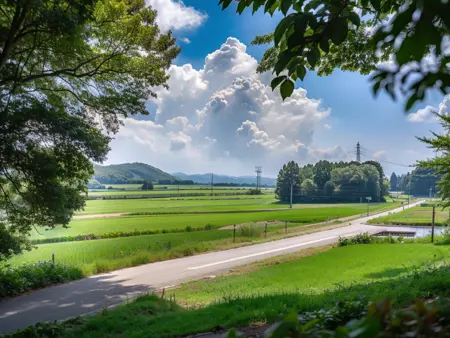 由摄影素材制作的模型可生成亚洲乡村风景,配合提示词还可生成乡村中的建筑图像,建议配合 ControlNet 使用以获得更佳氛围效果。