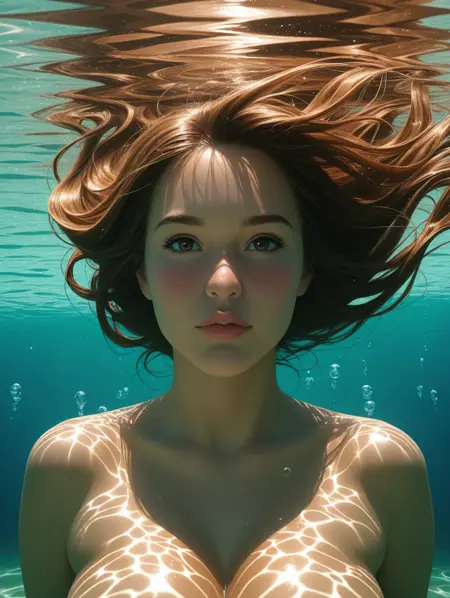 underwater viewer, viewer looking up underwater, viewer underwater, underwater view, below view from underwater