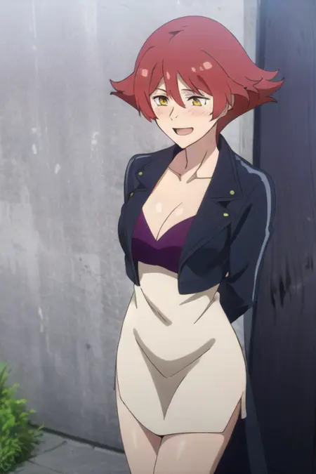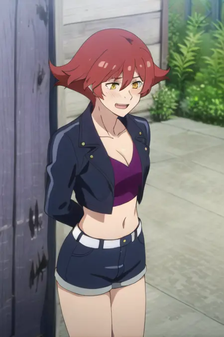 オプションのトリガー語:ジャケット、ユニフォーム、クロップトップ、鎖骨、黒ジャケット、レザージャケット、警察の制服