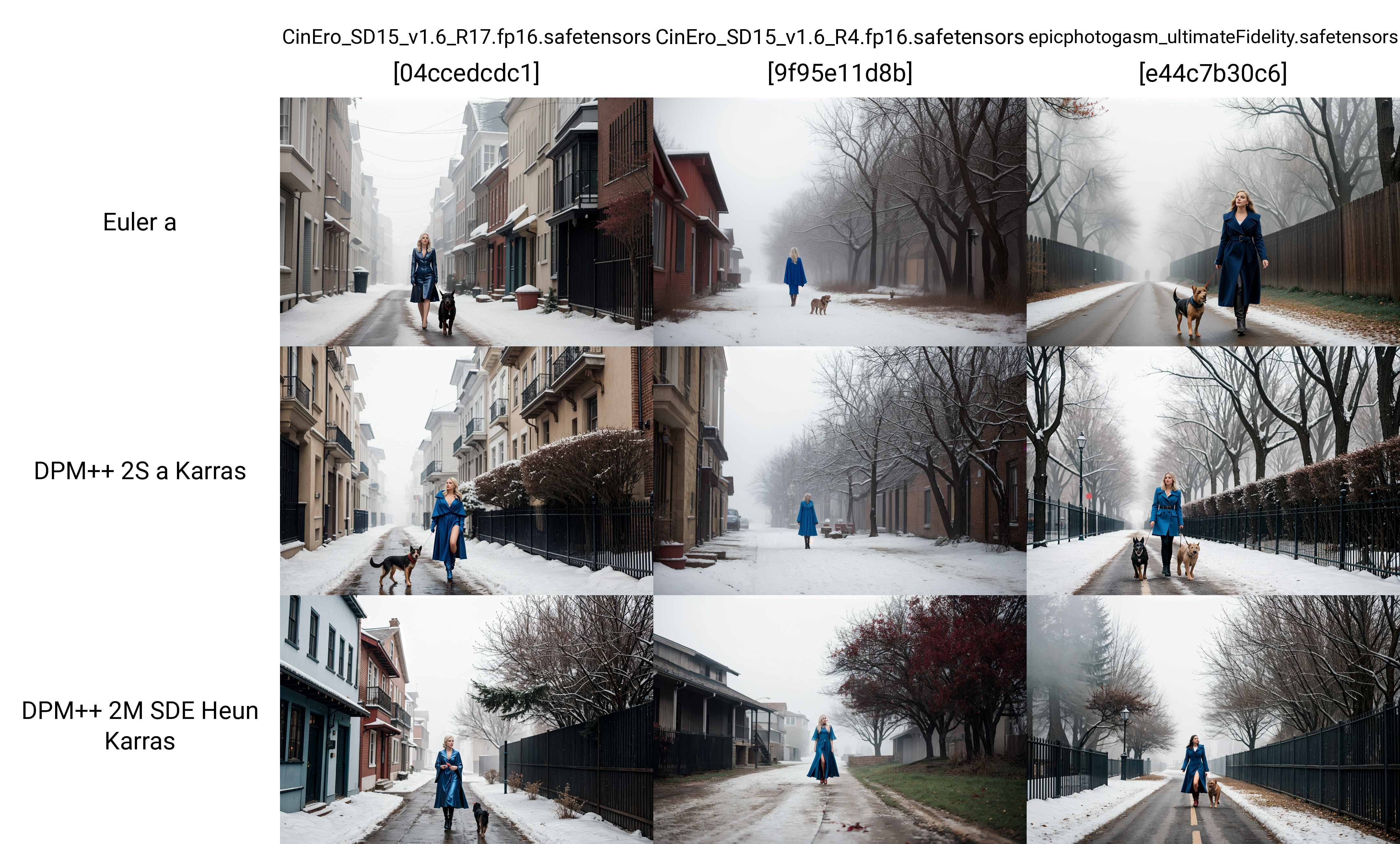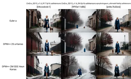 PS:上述提示会强制SD用极少量颜色绘制场景,仅在某些区域(如发丝或衣物)呈现鲜艳色块(我展示过灰色图像中仅人物部分有鲜艳发卷或衣饰)。你也可以反过来操作:让整个画面着色,仅局部区域为灰度。[奥黛丽·赫本 : 米拉·乔沃维奇 : 16] —— 你可以在Automatic1111的XYZ绘图脚本中享受从一张脸平滑过渡到另一张脸的乐趣。这种特定的时间技巧有助于我的模型生成最真实、最准确的人体解剖结构。我推测你也可以用此技巧实现动态LoRa权重调整。若LoRa没有触发词,你可以直接使用类似 [ <lora: ...:0.42> : <lora: ...:0.99> : 16] 的结构,或使用来自不同LoRa的多层嵌套“触发词”。