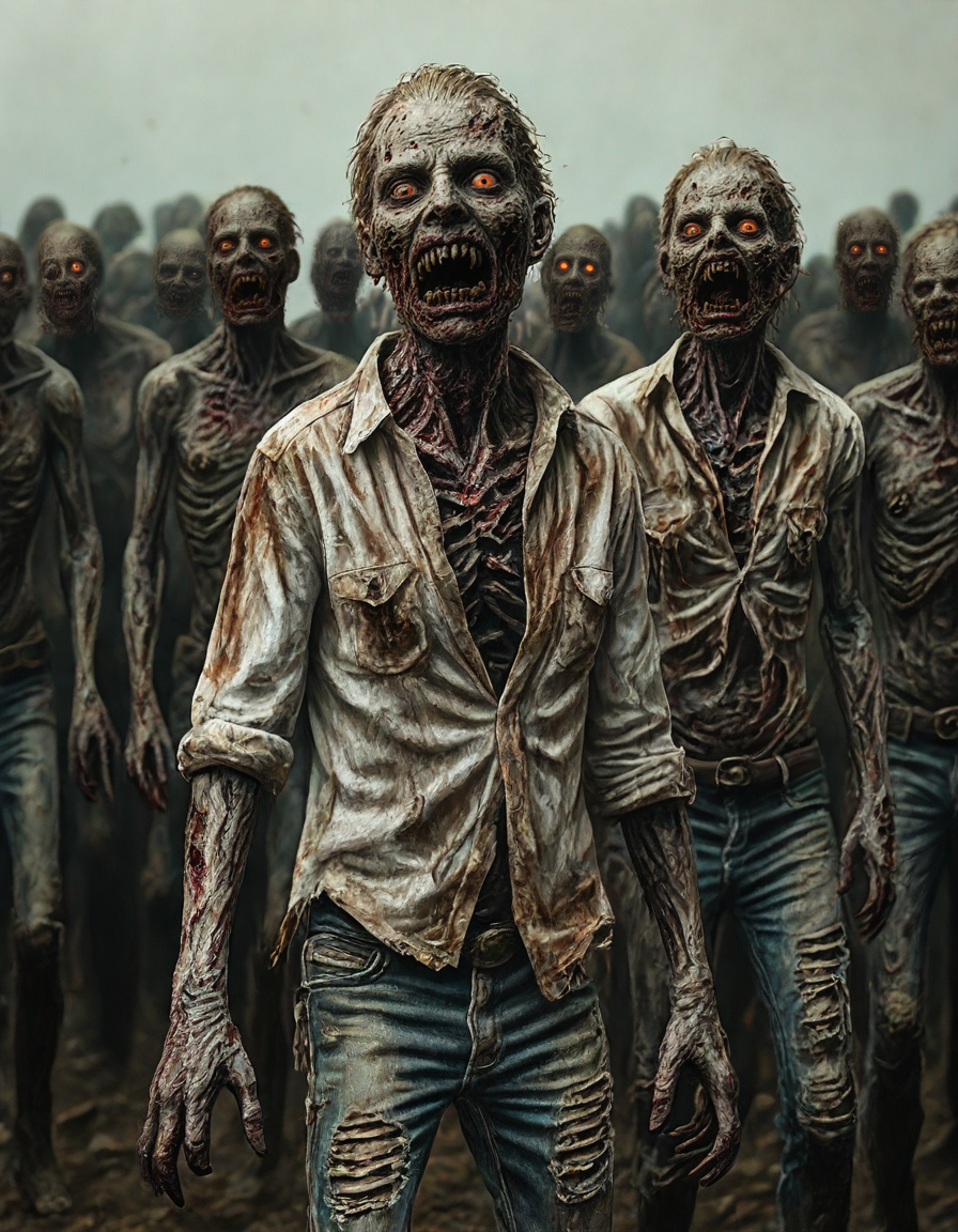 (일부) 더럽고 썩은 흰 셔츠와 찢어진 청바지를 입음