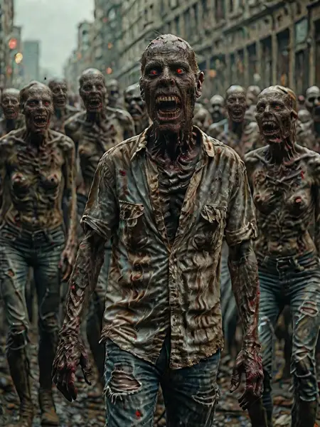 (일부) 더럽고 썩은 흰 셔츠와 찢어진 청바지를 입음