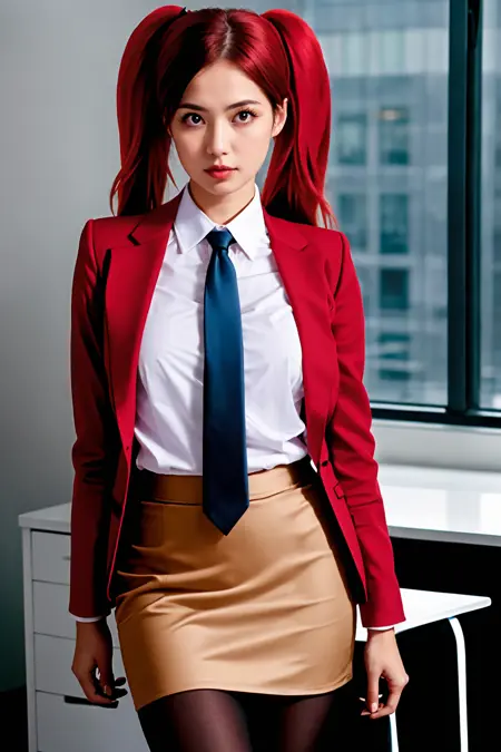 추가 프롬프트: 빨간 눈, 빨간 머리, 더블 테일