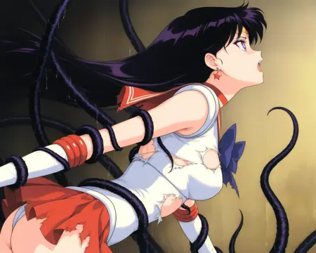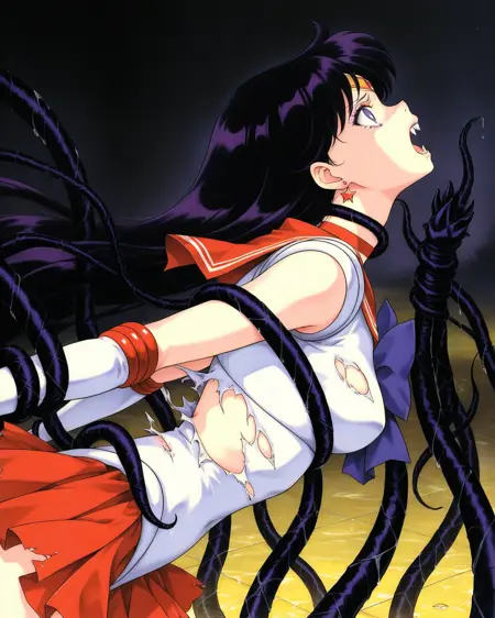 shdwbst, 1girl, solo, before, transforming, fangs, snout, tentacles, suspended