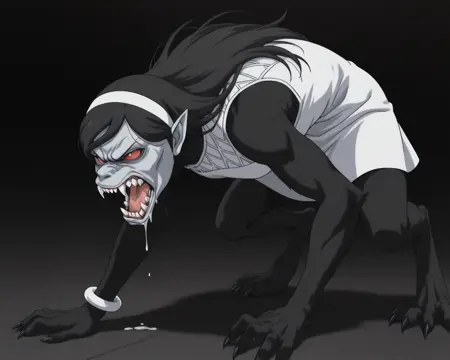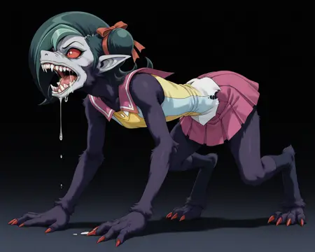 shdwbst, 1girl, solo, before, transforming, fangs, snout(シャドウビーストの特徴を追加すると、変身の段階に影響を与える)