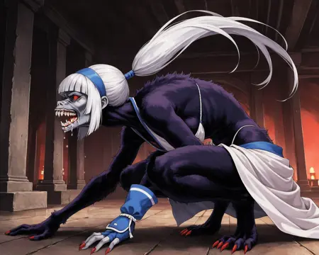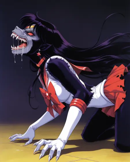 サンプルと変身シーンは非常に少なく、解像度も低く、21枚の画像のうち生物が13枚しか含まれていない。解像度の低さからノイズが発生しやすく、複数の人物や追加の四肢・指が現れる可能性がある。生物は黒色であるためコントラストが低く、生成はされるが明確な輪郭が得にくい。