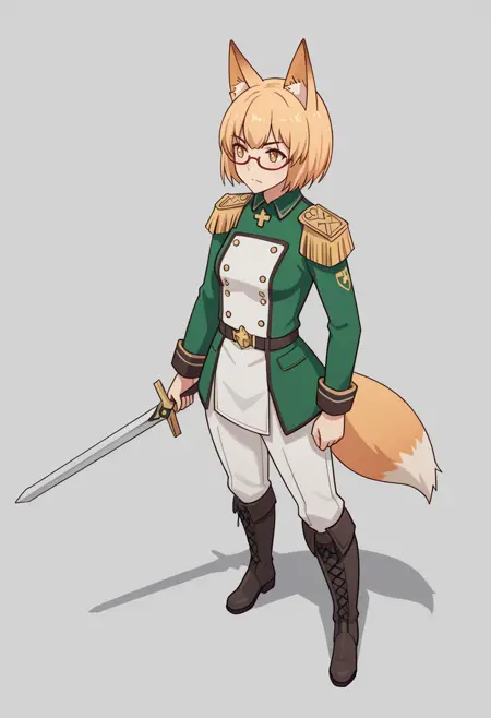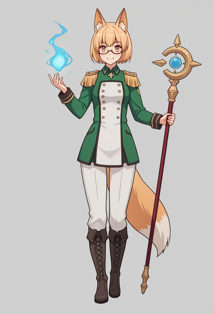 kaedefoxia, 1girl, solo, kitsune, glasses, animal ears, tail