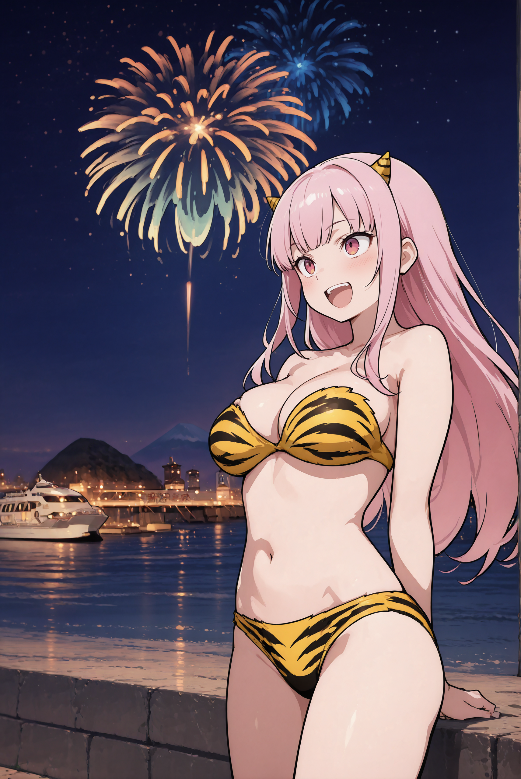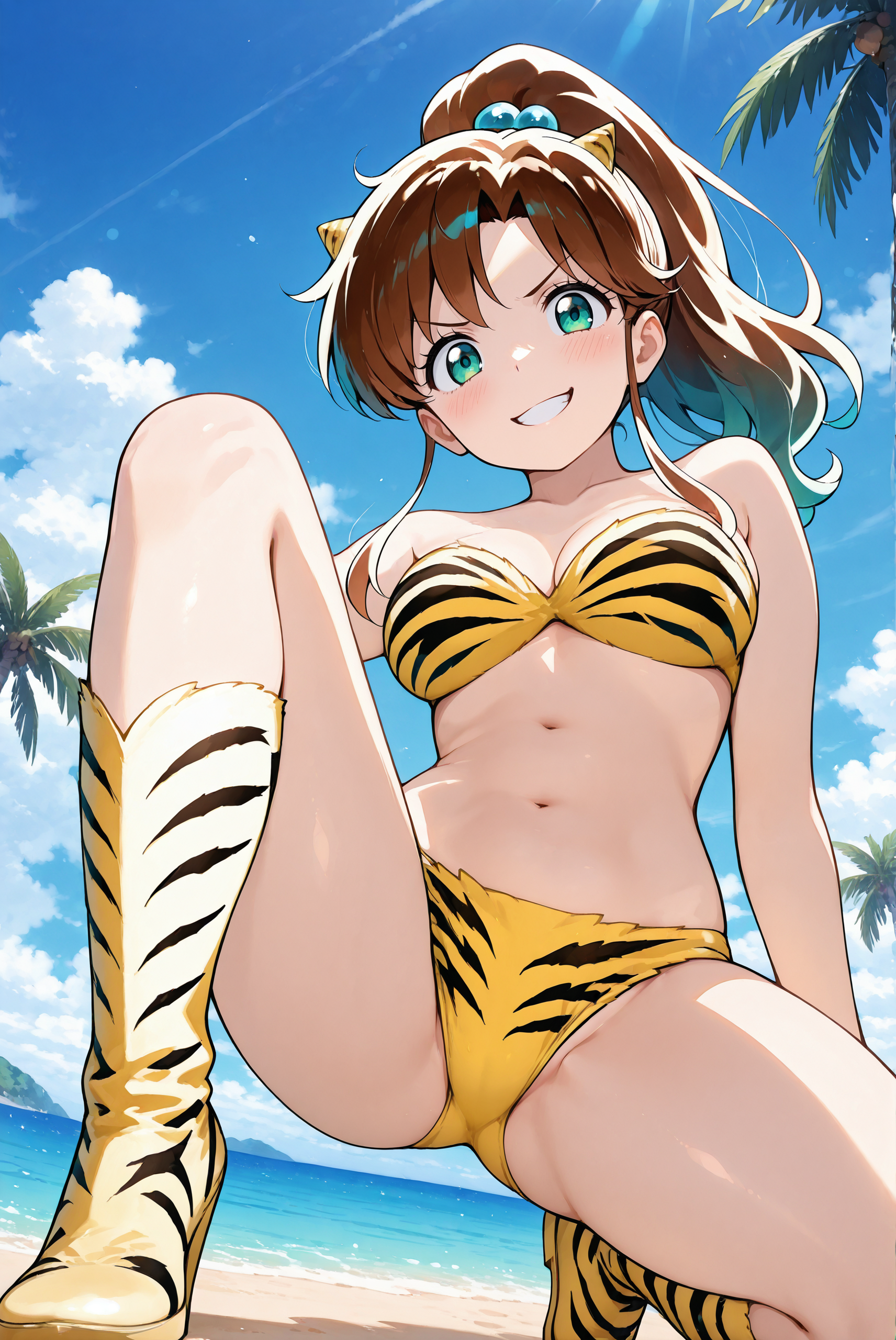 这是《幽游白书》中露姆所穿的虎纹比基尼。她通常穿着虎纹比基尼和高筒靴,头上还有两只小角。