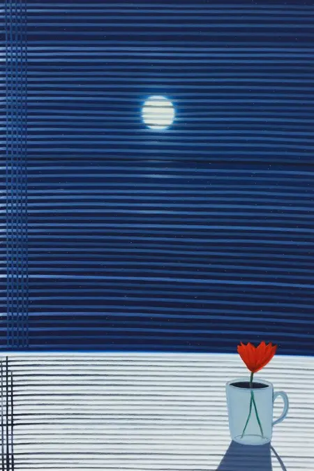 Wong’s paintings explore themes of solitude, memory, and introspection. They often depict serene yet haunting environments such as moonlit forests, isolated figures, or empty pathways.