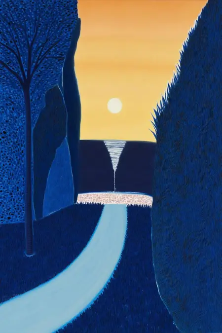 His works often evoke dreamlike, contemplative landscapes, with a balance of abstraction and representation.