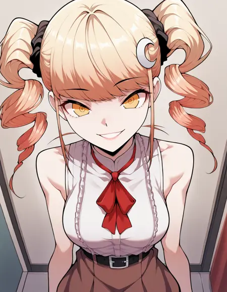 Seo_Eun-Young, manhwa, webtoon, blonde hair, yellow eyes, medium breasts, long hair, drilled twintails, tied hair, drill hair, crescent hair ornament,