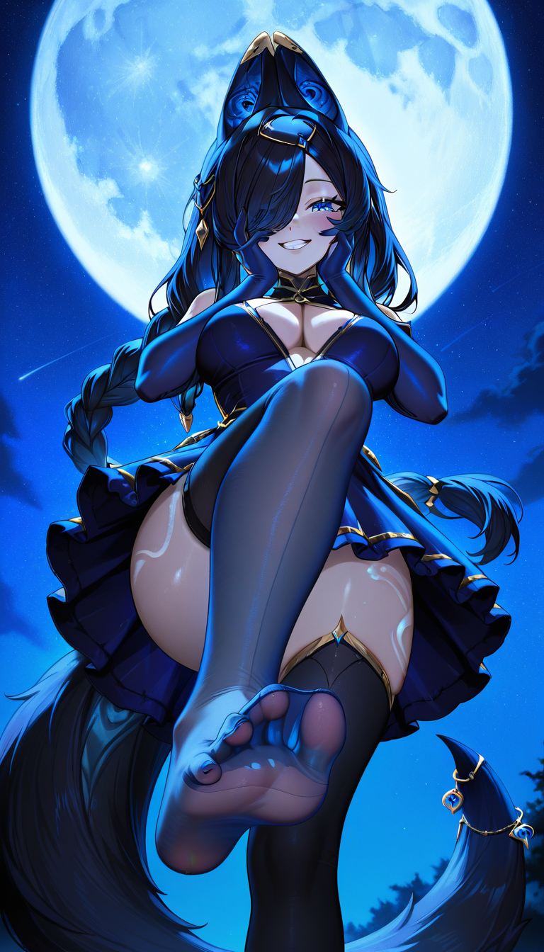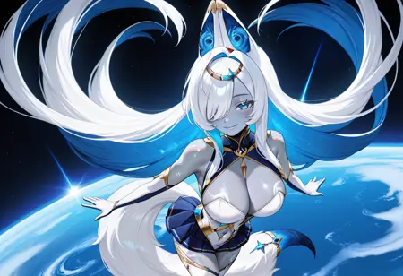| 训练词汇 | needivt, 1girl, solo, fox girl, black hair, blue hair, multicolored hair, long hair, hair over one eye, colored inner hair, blue eyes, blue skin, colored skin, breasts, large breasts, cleavage, body markings, fox ears, animal ears, fox tail, tail, dress, black dress, blue dress, plunging neckline, skirt, blue skirt, gloves, blue gloves, elbow gloves, pantyhose, black pantyhose, tiara, gold trim, one eye covered, high heels, blue footwear,已复制! needivt, 1girl, solo, fox girl, white hair, blue hair, multicolored hair, long hair, hair over one eye, colored inner hair, blue eyes, blue skin, colored skin, breasts, large breasts, cleavage, body markings, fox ears, animal ears, fox tail, tail, dress, white dress, blue skirt, skirt, gloves, elbow gloves, cleavage cutout, navel cutout, clothing cutout, gold trim, tiara, one eye covered, high heels, blue footwear,已复制! |