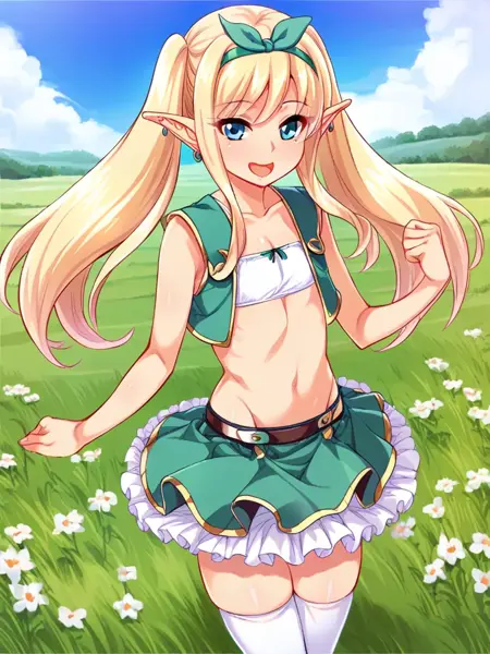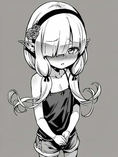 - Shaua nm,尖耳,白发,双马尾,平胸,丝带发圈,