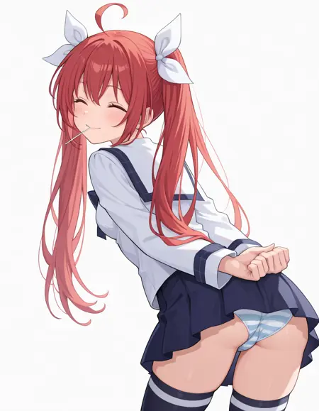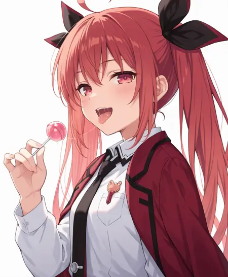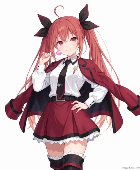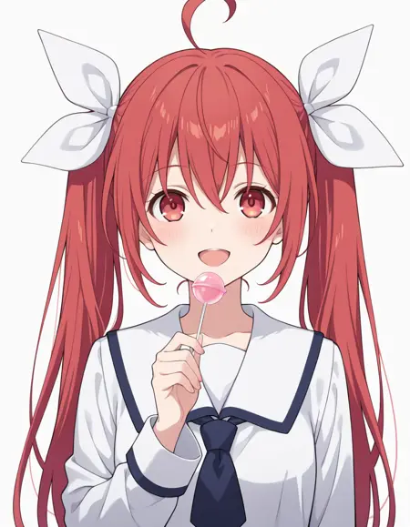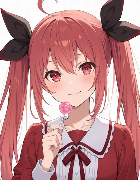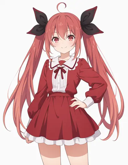 Kotori, red eyes, long hair, red hair, ahoge, twintails, hair ribbon