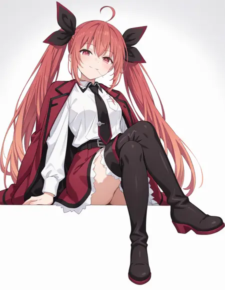 KotoriFrx, frx_shirt,open jacket, jacket on shoulders, frx_hair_ribbon, frx_necktie, frx_jacket, frx_skirt, frx_belt, frx_thigh_boots