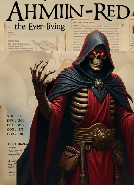 Ahmin-Red was once a human. Skilled in mercantile and known among his peers for his sage-like knowledge and advice. While he was born with no magical abilities, through an arduous amount of discipline and study he completed the wizard's trials and became an enchanter and advisor to house Caerwyn. Shortly after being appointed as a bannerman to house Caerwyn, he found love in the tender embrace of Musa, a beautiful enchantress he had met while studying for the wizard's trials.