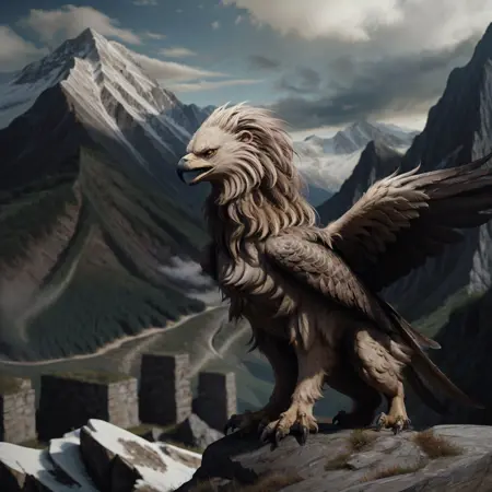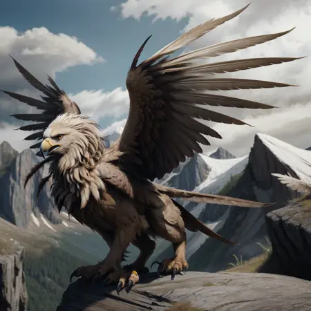 이 LoRA는 중세 RPG용 그리폰을 생성하기 위한 것입니다. 매우 성격이 괴팍해서 다시 수정해보려고 하지만, 좋은 그리폰 이미지들도 일부 있습니다. 훈련 이미지들에서 모두 4개의 발/발톱이 나타나고 있지만, 프롬프트에 따라 때로는 이진보행 형태로 생성되므로 ((four paws))를 삽입해야 했습니다. 어쨌거나, 몇 가지 좋은 이미지들이 존재합니다. 언어 확대기에서 샘플링과 노이즈 제거를 증가시키면 훈련 이미지의 외관을 더 잘 유지하는 데 도움이 되었습니다(물론 예상했듯이요). 그럼에도 불구하고, 일부 간단한 프롬프트는 꽤 잘 작동합니다(예: <lora:RPGGriffon:1> griffon:1.3, mountains, 8k, intricate details, depth of field, cinematic,).