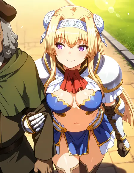 권장 프롬프트 (clothing①): bikini armor, armor, red bow, pauldrons, gauntlets, loincloth, greaves