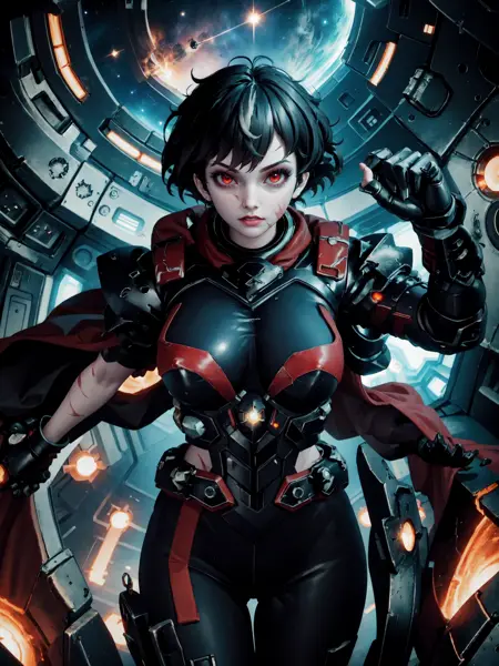 彼女のメイン衣装を表現するには "blybt, power armor, red cape" を使用。このタグは時として非常にランダムになるため、ウェイトを 1.0 に保つことで一貫性を高めてください。