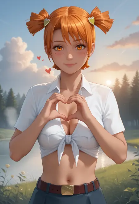 私はこのプロンプトを使用します — aliska, オレンジ色の髪, 短い髪, 右側の前髪, オレンジ色の目, 顔のほくろ, 体のほくろ, 中くらいの胸, 濃い肌の女性, 濃い肌, 1girl, solo,