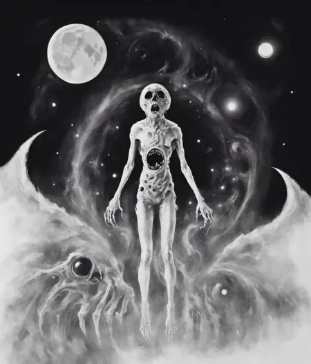 コズミックホラーなDisco Diffusionのレンダリングから選ばれた少量のデータで学習されました。